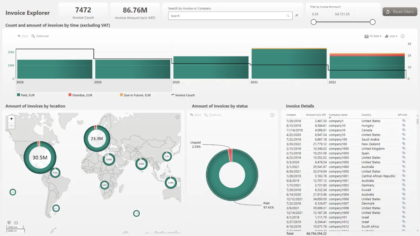 To interact with this Power BI invoice dashboard, simply click any active elements directly on the charts. Download this report to see all the settings, formulas, and calculations. Try it out with your own data and explore the customization options!